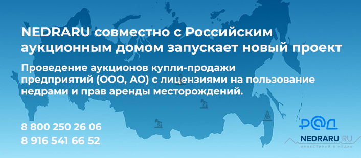 В этом блоке размещаются объявления о продаже объектов недропользования, полученные с партнерских площадок. Если вы хотите разместить своё объявление, пожалуйста зарегистрируйтесь на портале nedraru.ru в качестве владельца объекта и разместите объявление через личный кабинет.